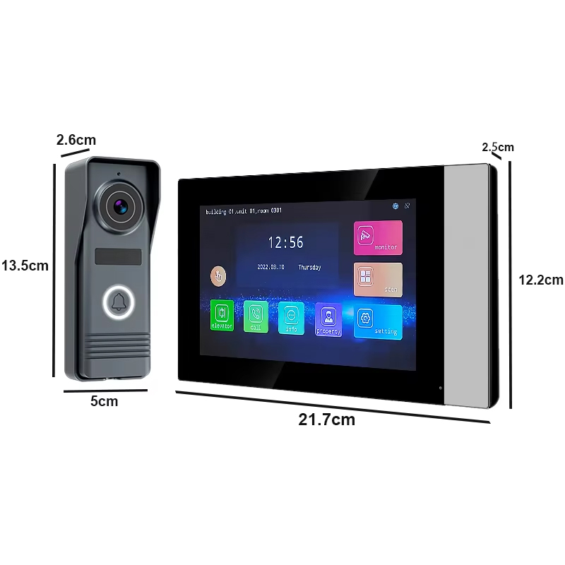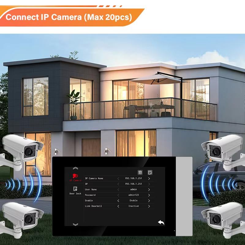 7″ IP Touch Screen Video Intercom, Tuya APP, 20 ONVIF Cams, 128G SD, POE, Elevator Control, Call Guard