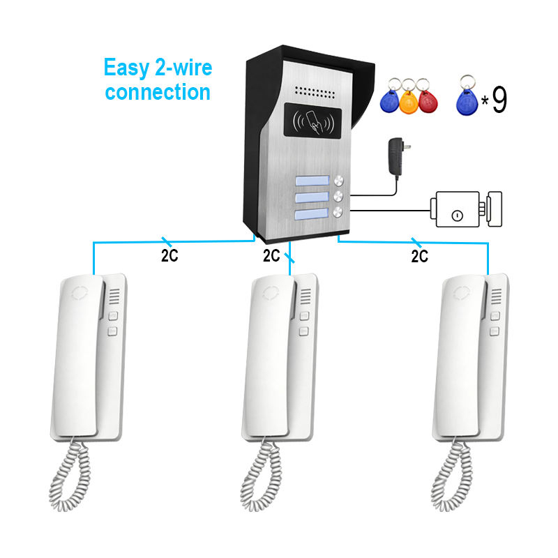 Wired Audio Door Phone System 2 Wire Intercom Communication With Metal Keypad Waterproof for Villa Home Security
