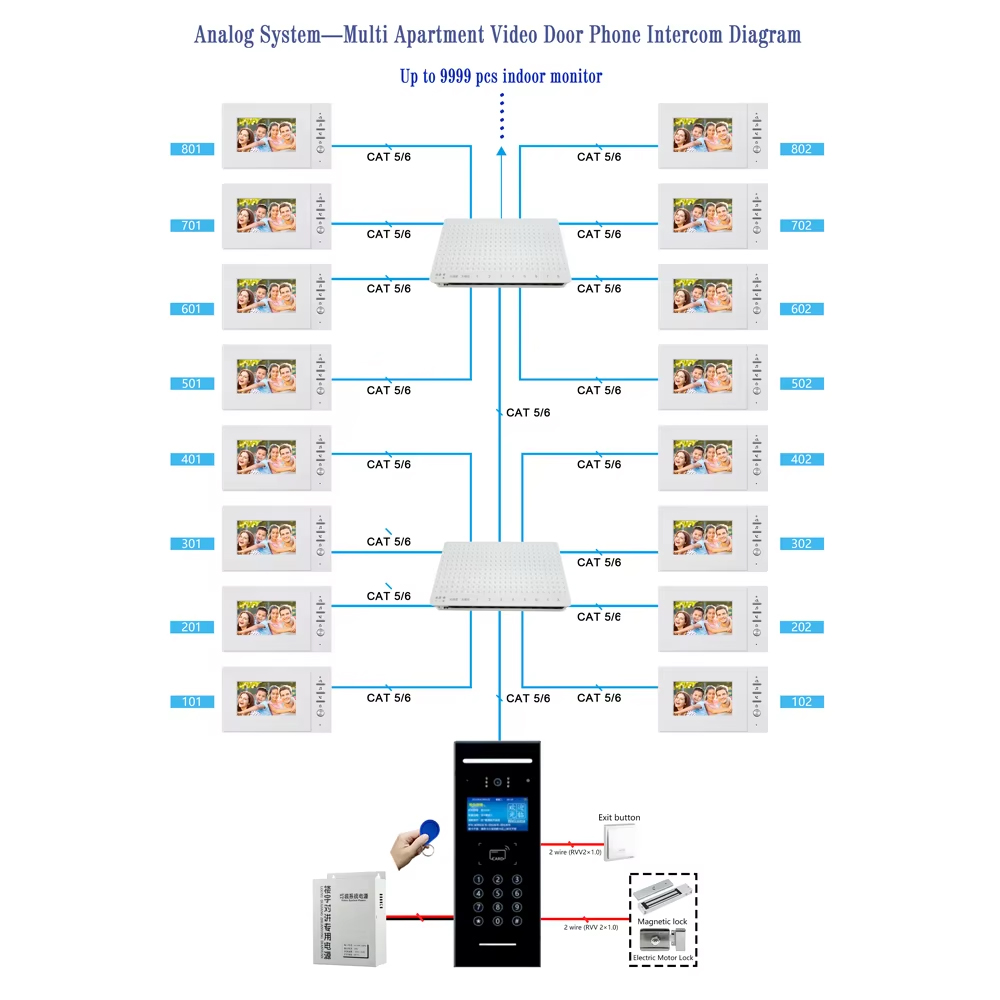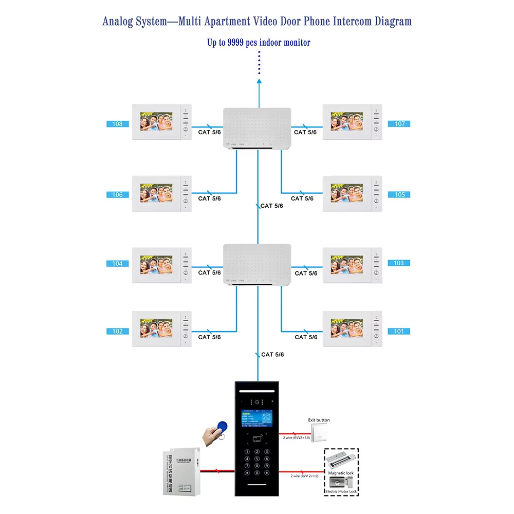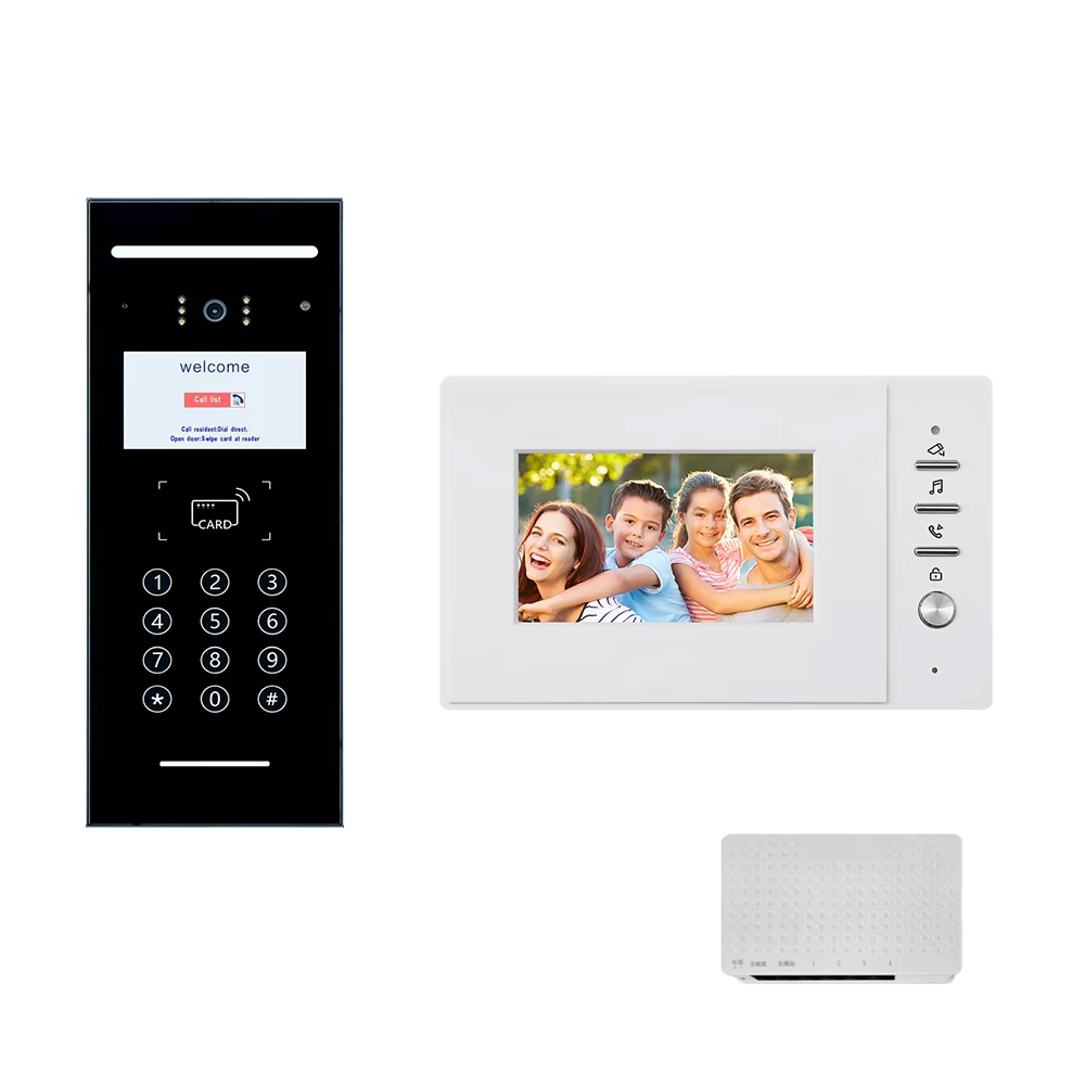 Analog POE Video Door Phone, 720P 130° Wide Angle IP65, 4.3″ TFT Glass Mirror, RFID/Password Unlock, 9999 Units, Flush/Wall Mount