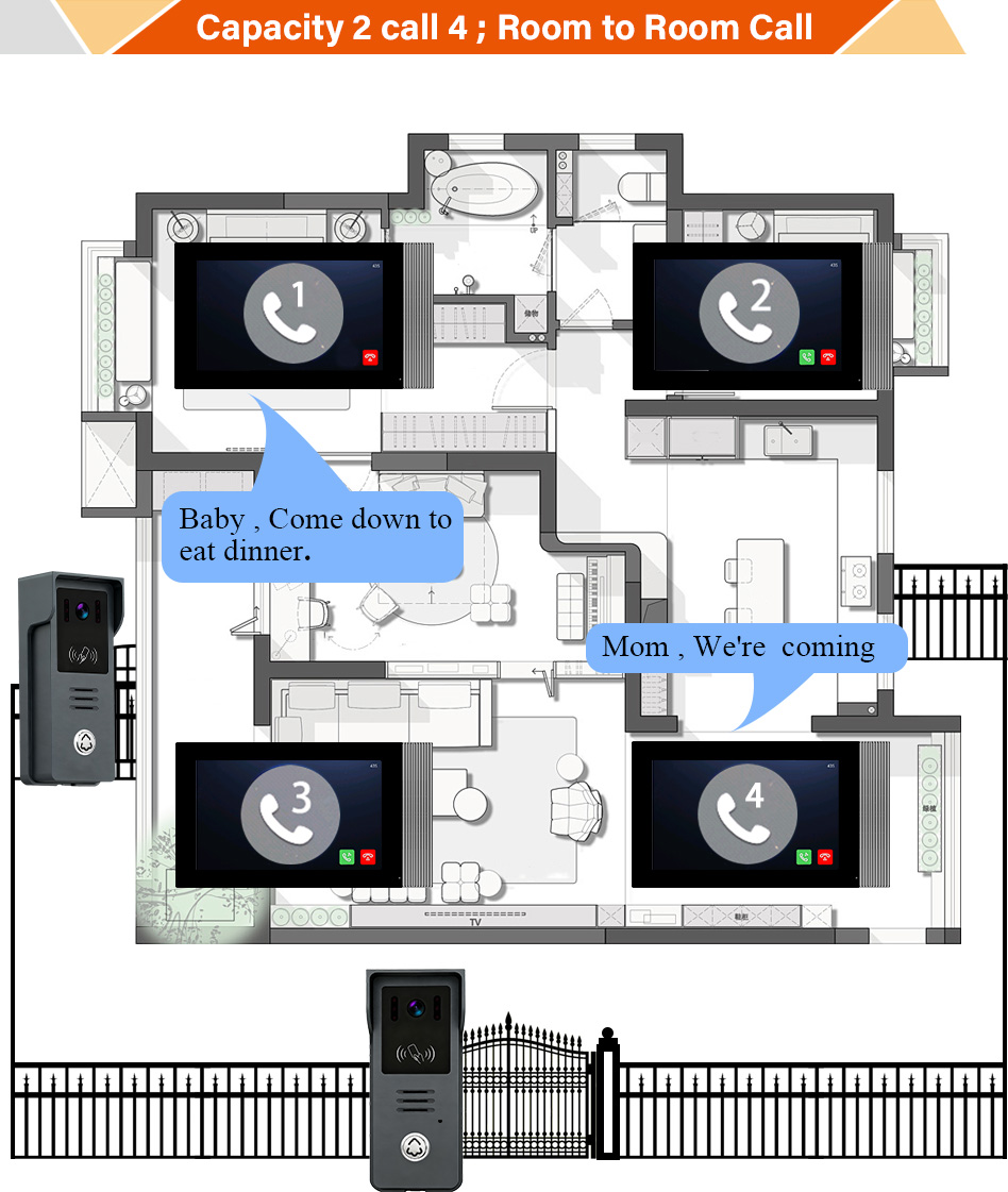 Farhd Fácil De Operar AHD 4Wire 7 Pulgadas Pantalla Táctil Completa Abrir 2 Puertas Video Portero Con Sistema De Grabación Para Villa