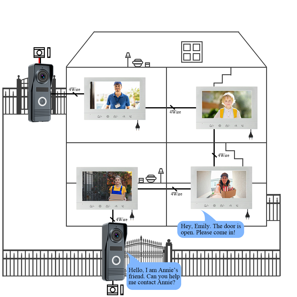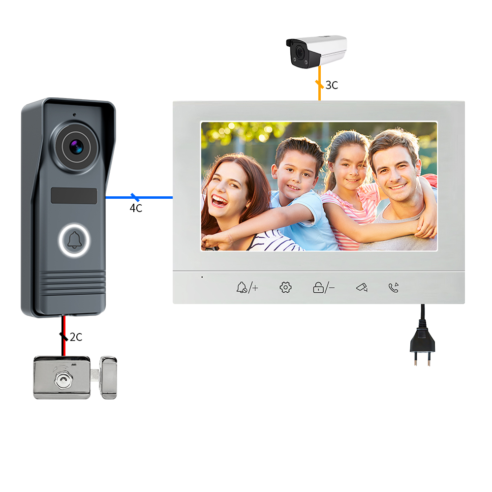 Kit de videoportero para villas Teléfonos de puerta Videoportero de 4 hilos Unidad interior de 7 pulgadas Sistema de entrada para videoportero