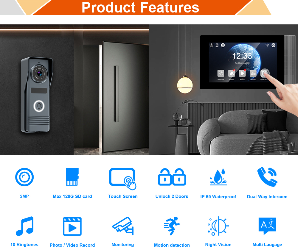 Farhd Easy To Operate AHD 4Wire 7 Inch Full Touch Screen Open 2 Door Video Door Phone With Recording System For Villa