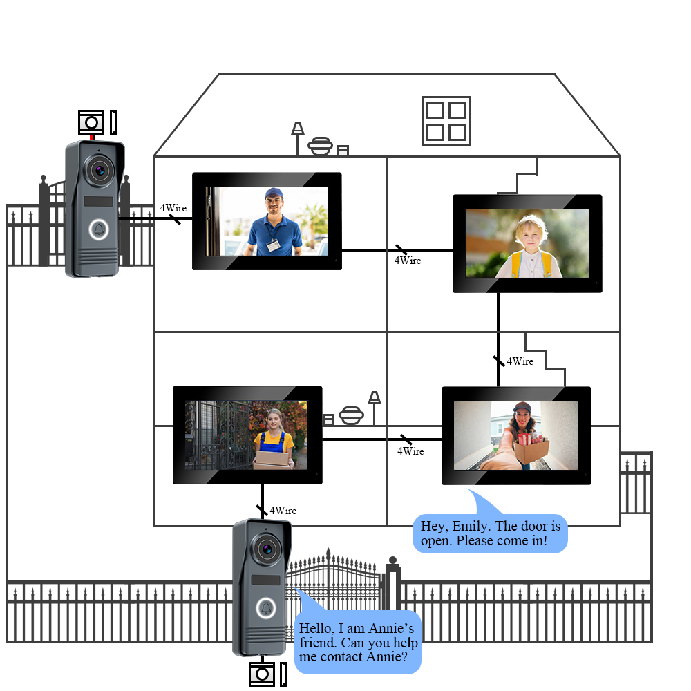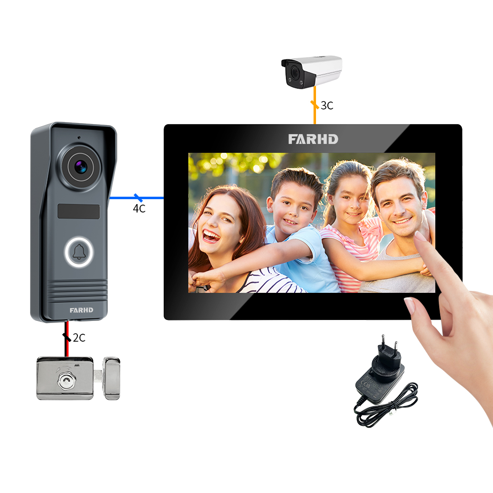 Farhd Easy To Operate iP 7 Inch Full Touch Screen Open 2 Door Video Door Phone With Recording System For Villa
