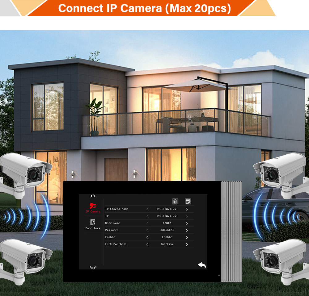 Farhd Easy To Operate IP 7 Inch Full Touch Screen Open 2 Door Video Door Phone With Recording System For Villa