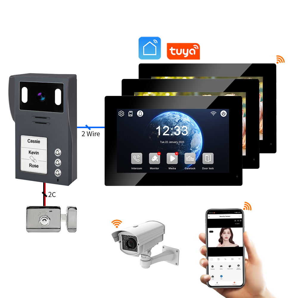 • Wired Audio Door Phone System 2 Wire Intercom Communication With Metal Keypad Waterproof for Villa Home Security
