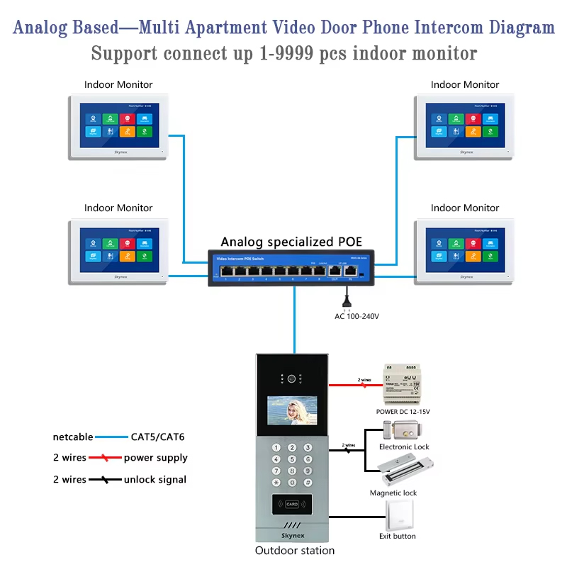 • Wired Audio Door Phone System 2 Wire Intercom Communication With Metal Keypad Waterproof for Villa Home Security