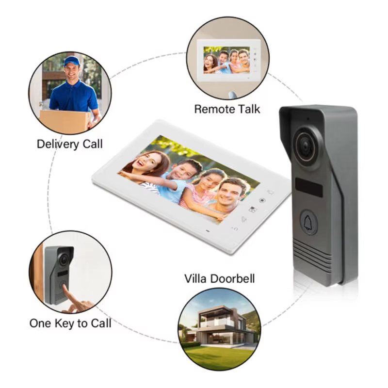 Kit Villa Interphone vidéo Téléphones de porte Unité intérieure 7 pouces Système d'entrée pour interphone vidéo de porte