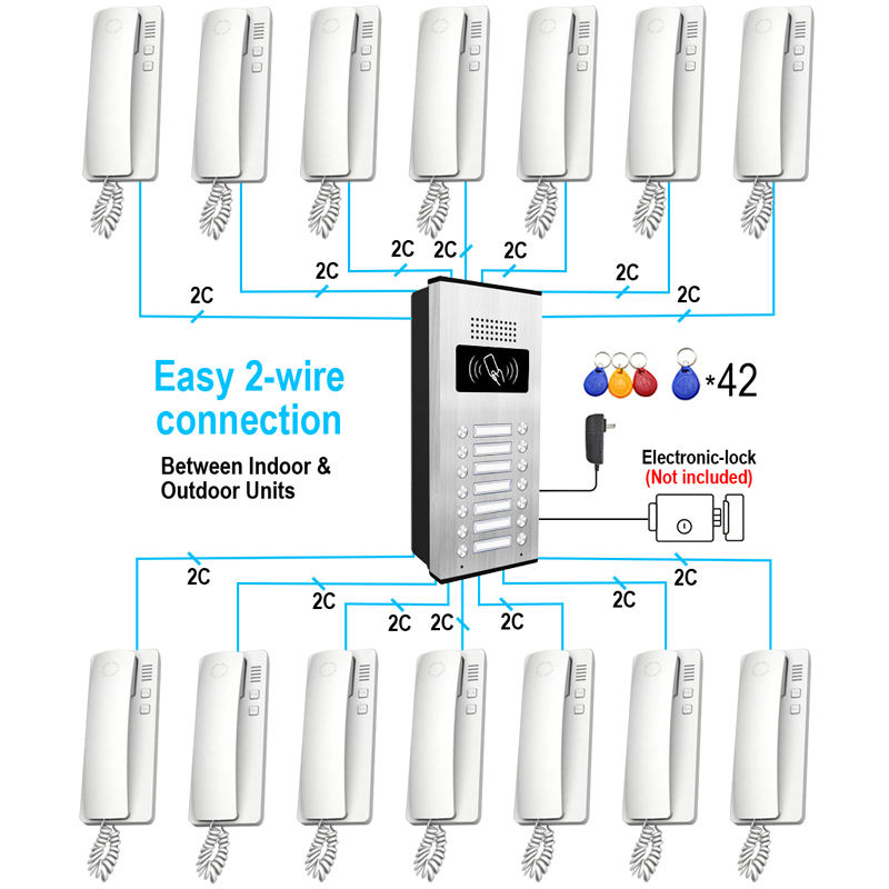 • Wired Audio Door Phone System 2 Wire Intercom Communication With Metal Keypad Waterproof for Villa Home Security