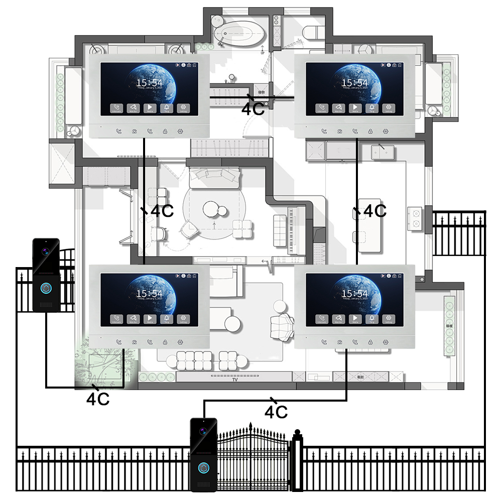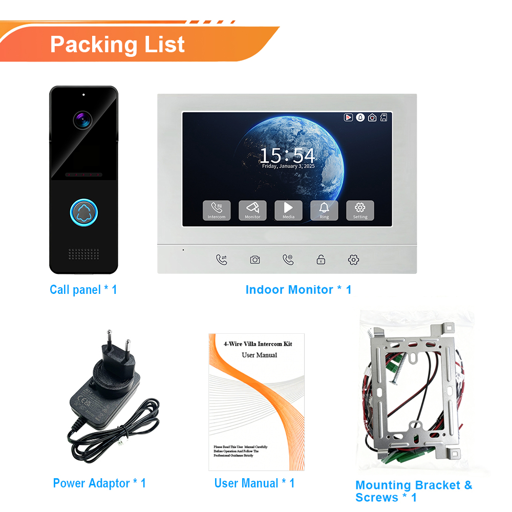 4-Wire Outdoor Door Station, 1080P 2MP 115° IR Camera, IP65 ABS Rain Cover, Wall Mount